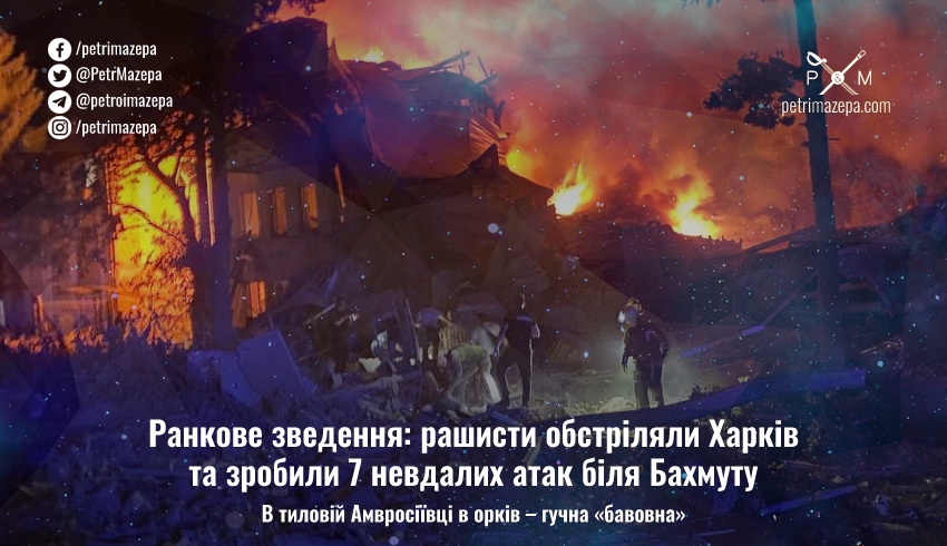 Ранкове зведення: рашисти обстріляли Харків та зробили 7 невдалих атак біля Бахмуту
