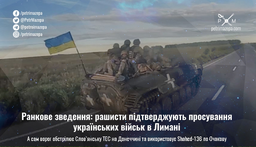 Ранкове зведення: рашисти підтверджують просування українських військ в Лимані