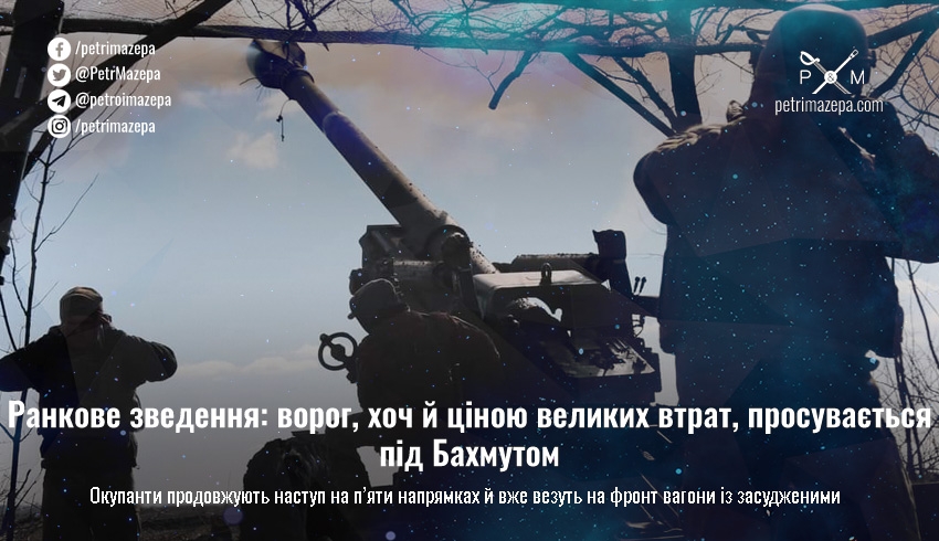 Ранкове зведення: ворог, хоч й ціною великих втрат, просувається під Бахмутом