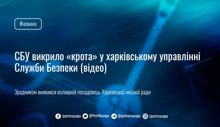 Служба безпеки України викрила «крота» у власному управлінні у Харківській області — колишній посадовець Харківської міської ради влаштувався у СБУ після початку війни, зливав ворогу розвіддані та навіть просив завдати удару по будівлі, де розташований особовий склад СБУ.
