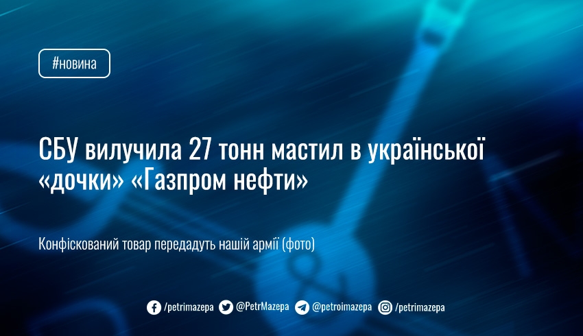 Служба безпеки вилучила 27 тонн мастил зі складів підприємства, кінцевим бенефіціарним власником якого є «Газпром нефть».