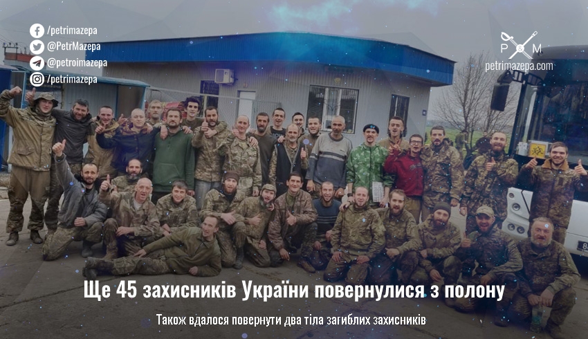 В Офісі президента повідомили про ще один обмін полоненими, у рамках якого вдалося звільнити 45 воїнів ЗСУ. Також вдалося повернути два тіла загиблих захисників.