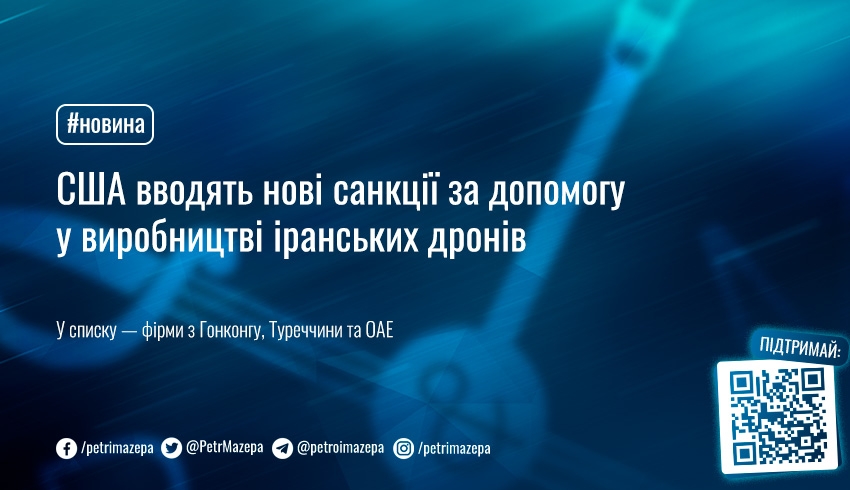 Санкційний підрозділ Міністерства фінансів США оголосив про запровадження санкцій проти п'яти компаній і двох фізичних осіб, причетних до виробництва іранських дронів Shahed-136.