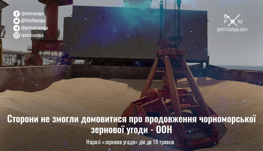 Вчора, 5 травня, представники росії, України, Туреччини та ООН не змогли досягти угоди про продовження українського експорту зерна з портів Чорного моря. Наразі «зернова угода» діє до 18 травня, й раніше росія погрожувала вийти з домовленостей, намагаючись вибити для себе чергові пом'якшення санкцій.