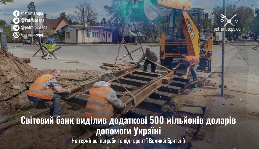 Світовий банк виділив додаткові 500 мільйонів доларів допомоги Україні