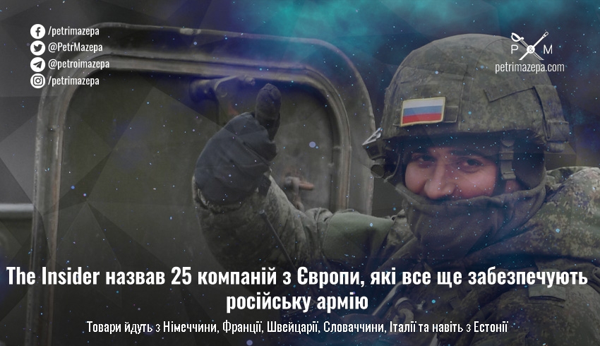 The Insider назвав 25 компаній з Європи, які все ще забезпечують російську армію