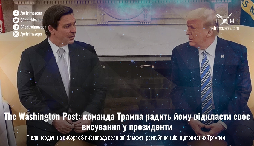 Команда колишнього президента США Дональда Трампа, який не проти знову повернутися до Білого дому, наполягає на відстроченні запуску виборчої кампанії на вибори у 2024 році. Спочатку Трамп планував зробити «дуже важливу заяву» вже наступного тижня, але проміжні вибори до Конгресу показали, що зараз у Республіканській партії сходить зірка ДеСантіса, а слава Трампа йде на спад.