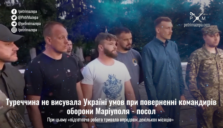 Туреччина не висувала Україні умов при поверненні командирів оборони Маріуполя - посол