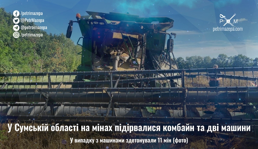 У Сумській області на мінах підірвалися комбайн та дві машини