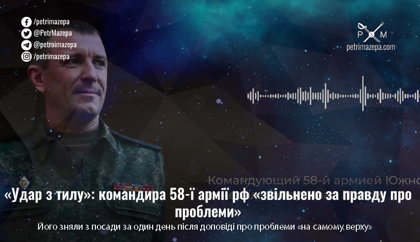 Командувач 58-ю армією рф, генерал-майор армії ворога Іван Попов заявив про черговий «удар у спину» — тепер, за його словами, його звільнили після доповіді про проблеми в армії «на самому верху».