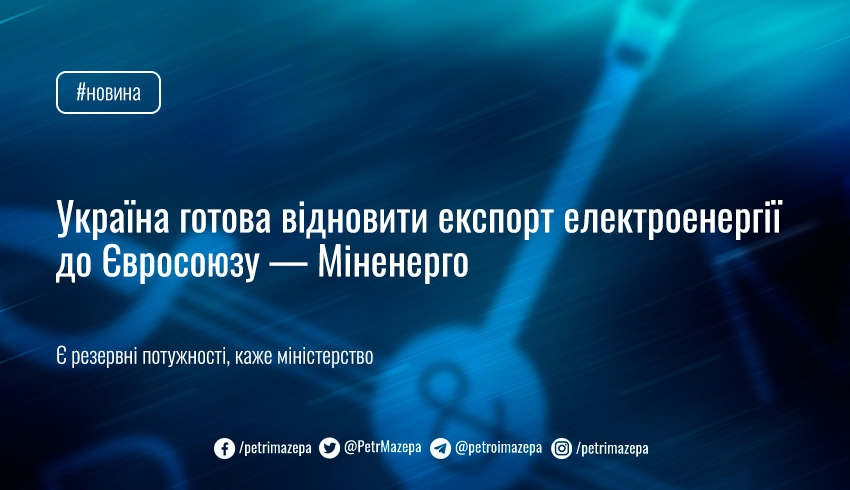 Україна готова відновити експорт електроенергії до Євросоюзу — Міненерго