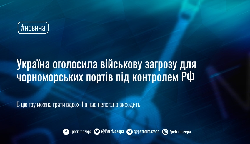 Україна оголосила військову загрозу для чорноморських портів під контролем РФ