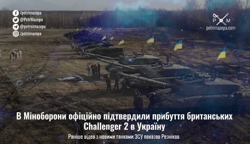Міністр оборони України Олексій Резніков опублікував відео з британськими танками Challenger 2 в Україні. Пізніше у міністерстві офіційно підтвердили, що ці танки прибули в Україну.