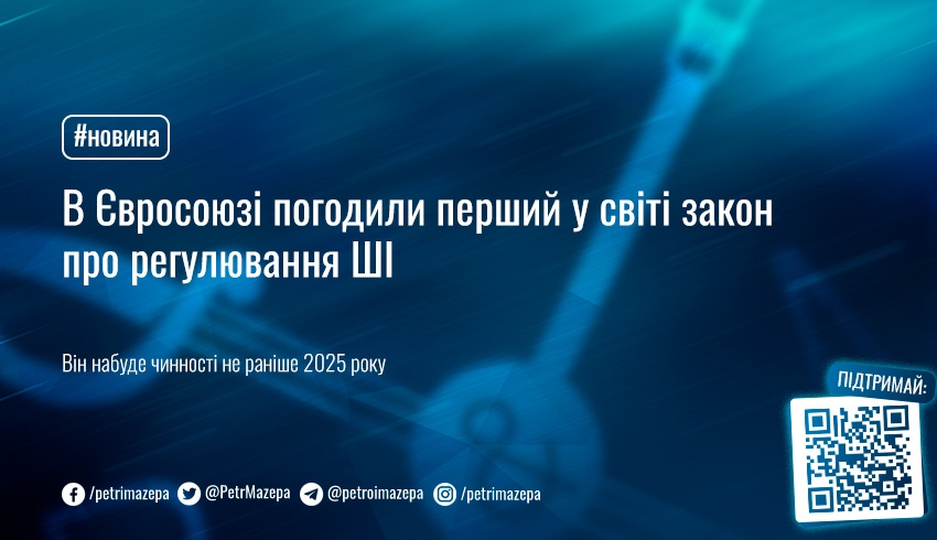 Країни Європейського Союзу і Європейський парламент погодили перший у світі комплексний закон щодо регулювання штучного інтелекту. Документ відкриває шлях для юридичного нагляду за технологіями, що використовуються в популярних генеративних сервісах штучного інтелекту.
