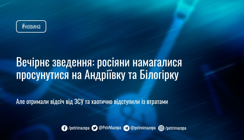Вечірнє зведення: росіяни намагалися просунутися на Андріївку та Білогірку