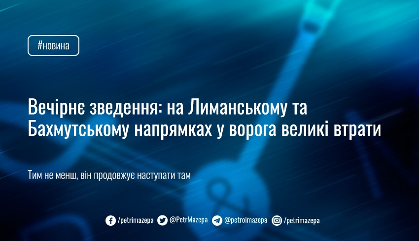 Вечірнє зведення: на Лиманському та Бахмутському напрямках у ворога великі втрати