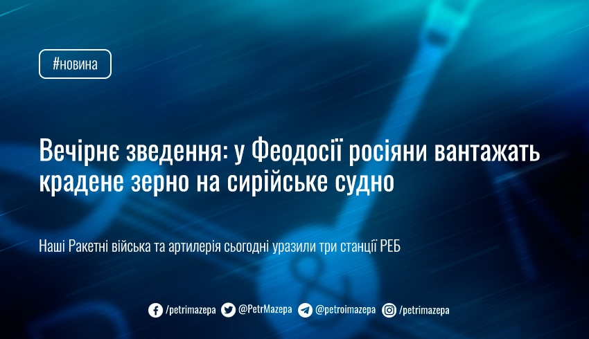 Вечірнє зведення: у Феодосії росіяни вантажать крадене зерно на сирійське судно