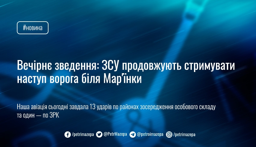 Вечірнє зведення: ЗСУ продовжують стримувати наступ ворога біля Мар'їнки