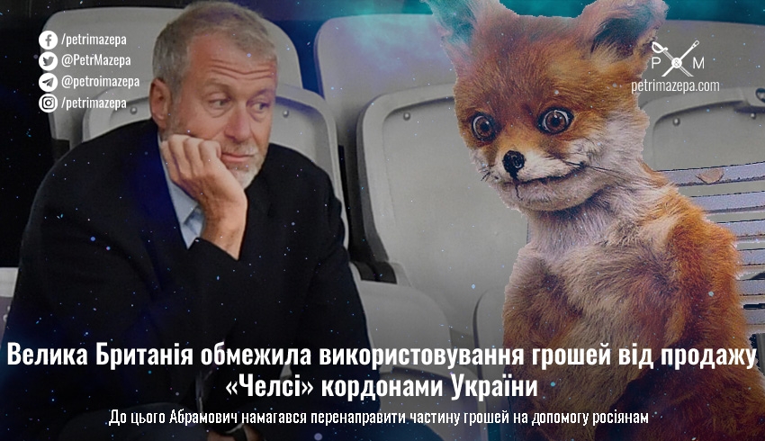 Влада Великої Британії обмежила використовування грошей від продажу «Челсі» кордонами України та заборонила фонду, до якого перерахував гроші Роман Абрамович, фінансувати проєкти не в Україні. Про це повідомив голова фонду Майк Пенроуз.