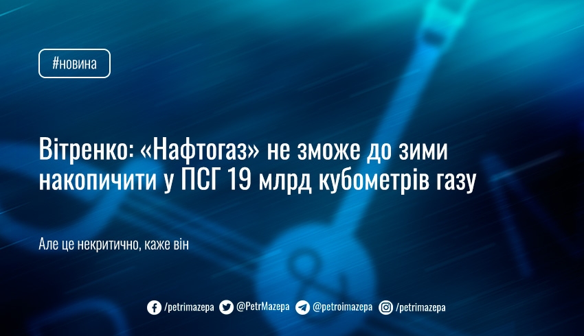 Вітренко: «Нафтогаз» не зможе до зими накопичити у ПСГ 19 млрд кубометрів газу