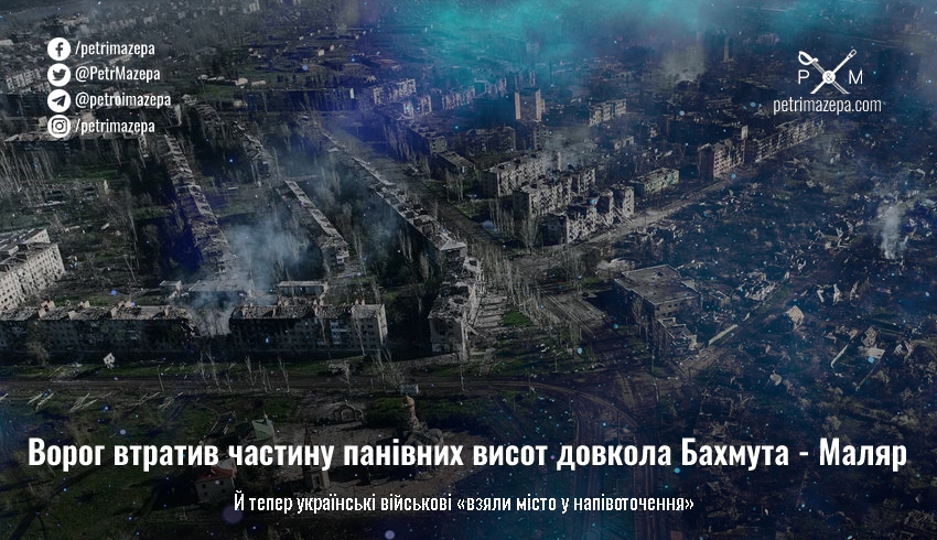 «Ворогу не вдалось оточити Бахмут і вони втратили частину панівних висот довкола міста. Тобто, просування наших військ у передмісті по флангах, яке і зараз триває, дуже сильно ускладнює ворогу знаходження у Бахмуті», — пише Маляр.
