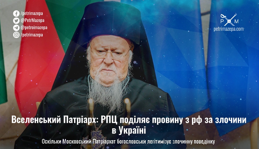 Вселенський Патріарх: РПЦ поділяє провину з рф за злочини в Україні