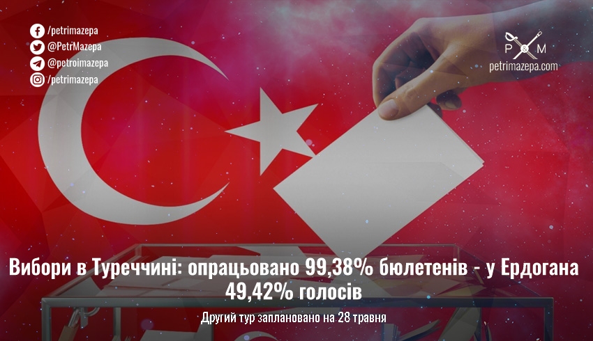 Президент Туреччини Реджеп Тайіп Ердоган не зміг здобути перемогу в першому турі виборів глави держави. Найімовірніше, у країні відбудеться другий тур, де зійдуться Ердоган і лідер опозиції Кемаль Киличдароглу.