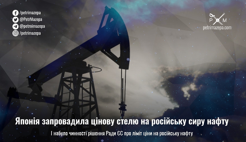 З понеділка, 5 грудня, набуло чинності рішення Ради ЄС про ліміт ціни на російську нафту і заборону морського транспортування російської нафти до третіх країн. А Японія ввела цінову стелю на російську сиру нафту, але сиру нафту, що імпортується із заводу «Сахалін-2», буде виключено з обмежень.