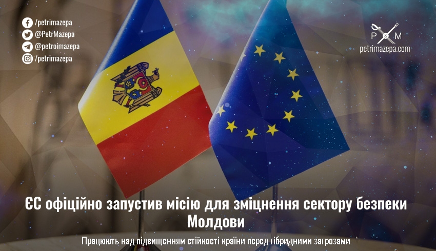 «Сьогодні Рада запускає Місію партнерства ЄС у Республіці Молдова (EUPM Moldova) у рамках Загальної безпекової та оборонної політики з метою посилення стійкості сектору безпеки в країні», — повідомила прес-служба Ради Євросоюзу, передає «Європейська правда».