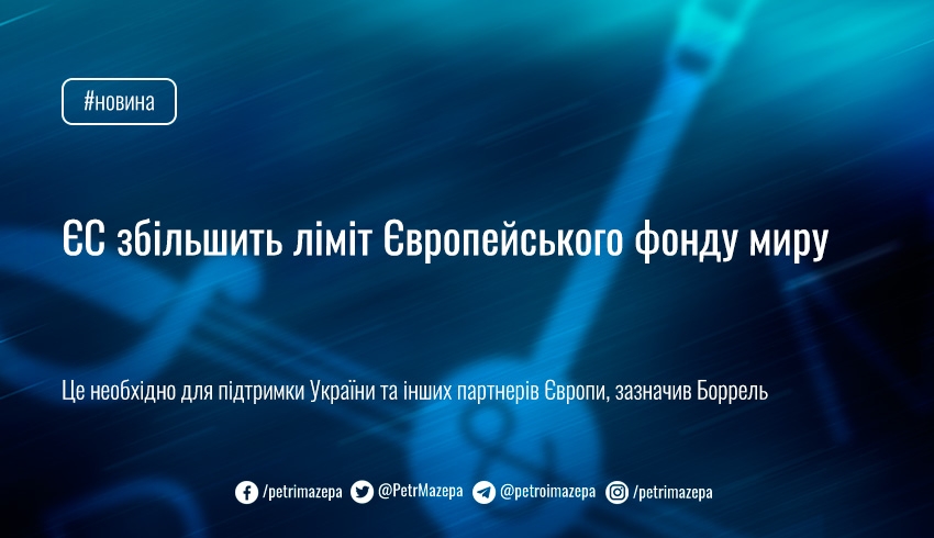 Рада Європейського Союзу оголосила сьогодні, 14 березня, що ухвалила рішення про збільшення фінансової стелі Європейського фонду миру (European Peace Fund, EPF) до 7,98 мільярда євро (у поточних цінах) до 2027 року, щоб забезпечити можливість покриття додаткових потреб.