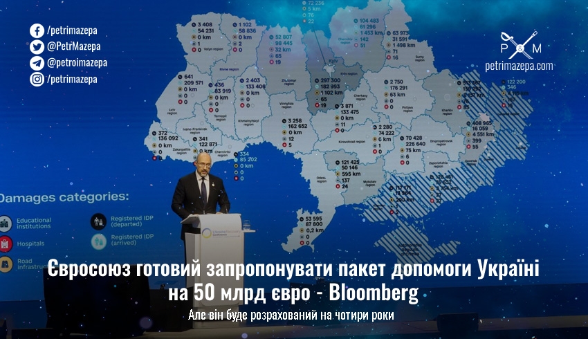 Як і писав Bloomberg, Єврокомісія запропонувала Україні пакет допомоги на 50 млрд євро на 4 роки