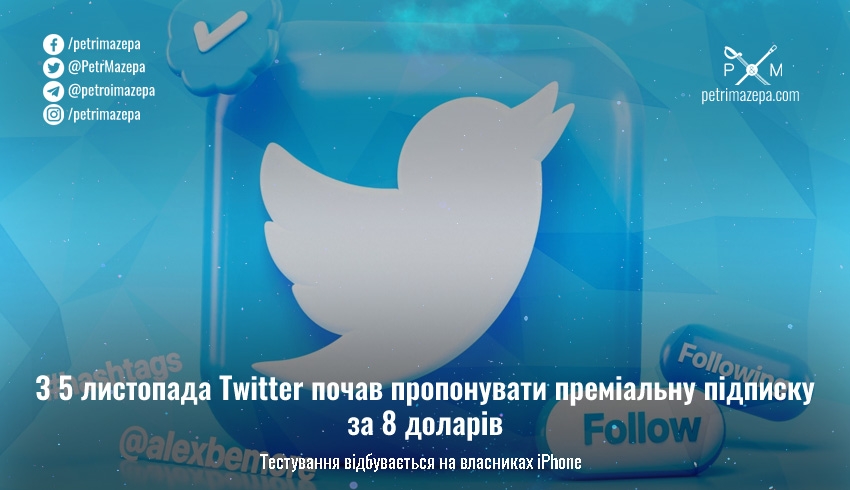 З 5 листопада Twitter почав пропонувати преміальну підписку за 8 доларів