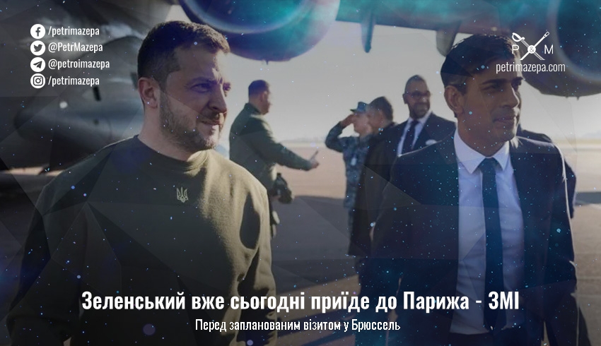 Президент України Володимир Зеленський вже сьогодні приїде у Париж, повідомляє видання BFMTV. Його прибуття очікується сьогодні ввечері.