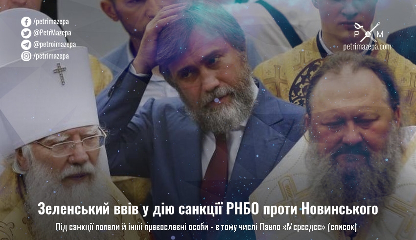 Президент Володимир Зеленський ввів у дію санкції РНБО проти олігарха, ексдепутата Вадима Новинського, митрополита Києво-Печерської Лаври Павла, більш відомого як «Павло-Мерседес» та інших осіб, пов’язаних з РПЦ та її філіалом в Україні.