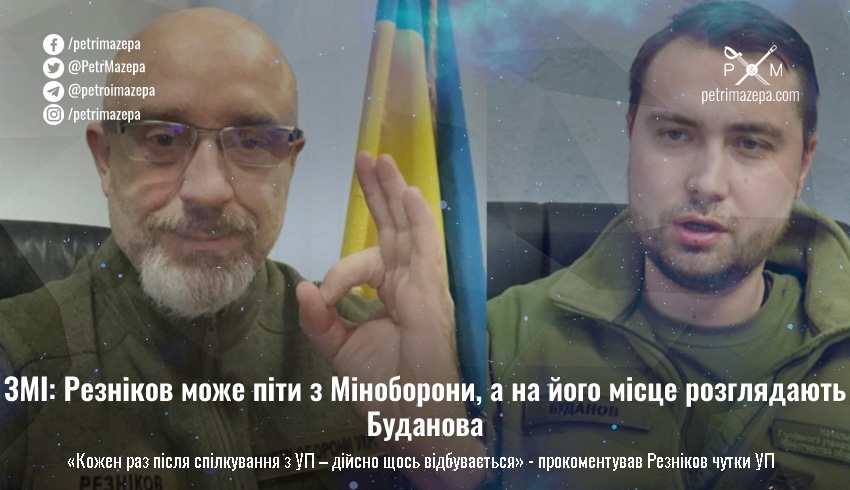 За даними «Української правди», яка посилається на свої джерела, з наступного тижня міністр оборони Олексій Резніков може залишити свою посаду. А на його місце розглядають чинного очільника ГУР Кирило Буданова.