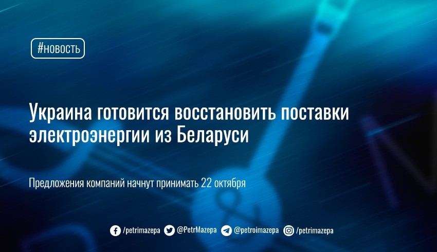 Как пишет ЕП, на 22 октября назначен официальный конкурс на доступ к сечению ЛЭП между Украиной и Беларусью.