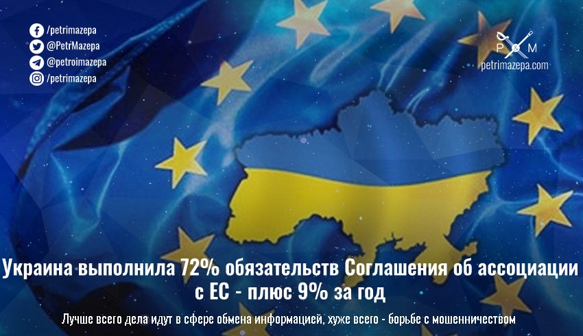 Украина выполнила 72% обязательств Соглашения об ассоциации с ЕС - плюс 9% за год