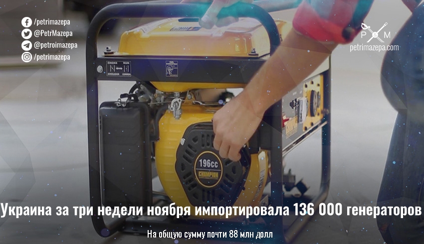 Украина за три недели ноября импортировала 136 000 генераторов