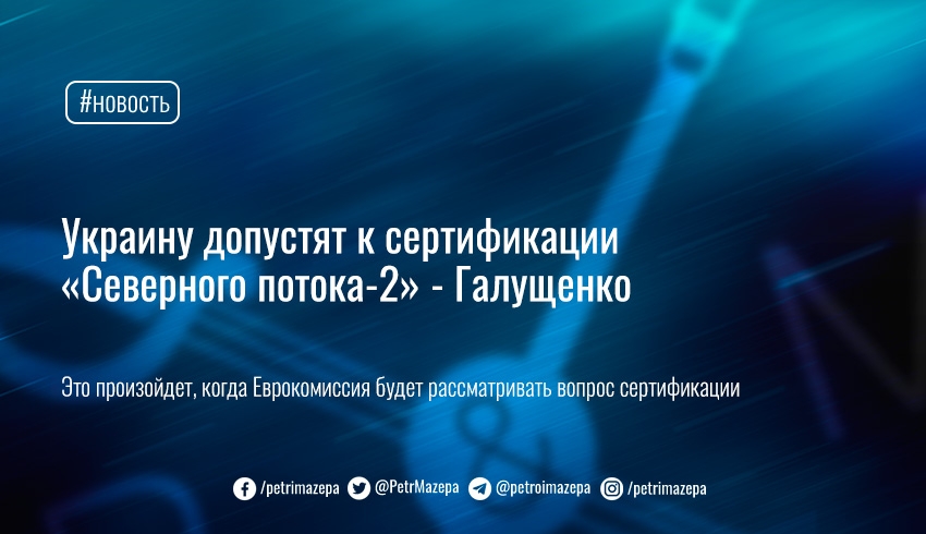 Украину допустят к сертификации «Северного потока-2» - Галущенко