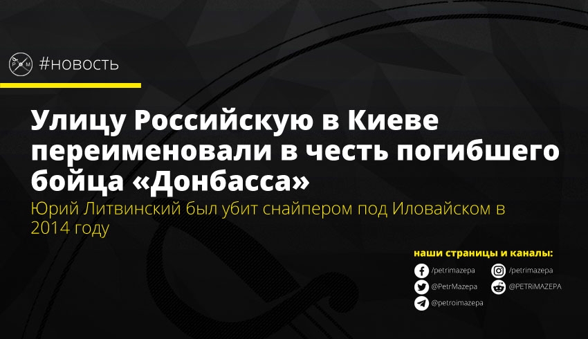 Киевсовет поддержал переименование улицы Российской в честь Юрия Литвинского, бойца 2-го батальона спецназначения НГУ «Донбасс», подполковника, убитого снайпером оккупантов при разминировании моста под Иловайском.
