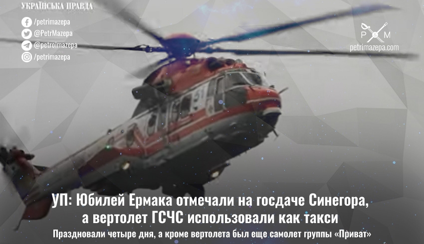 УП: Юбилей Ермака отмечали на госдаче Синегора, а вертолет ГСЧС использовали как такси