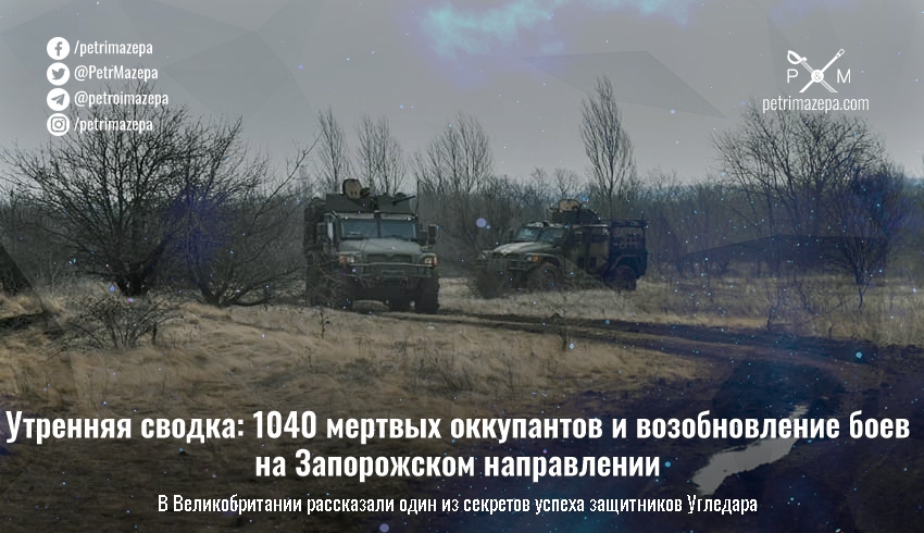 Утренняя сводка: 1040 мертвых оккупантов и возобновление боев на Запорожском направлении