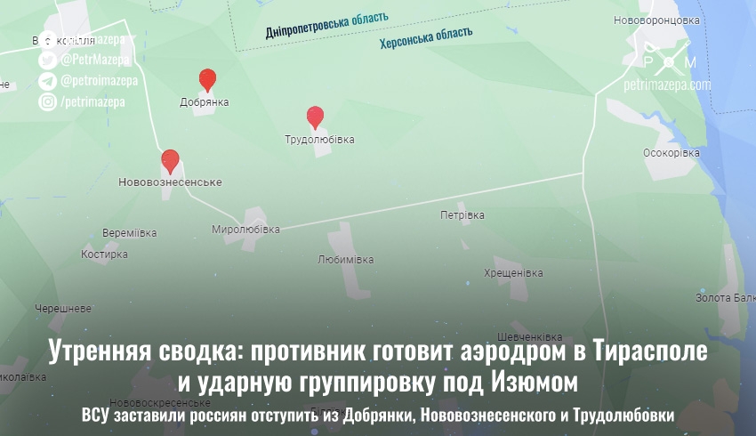 Утренняя сводка: противник готовит аэродром в Тирасполе и ударную группировку под Изюмом