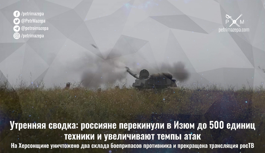 Утренняя сводка: россияне перекинули в Изюм до 500 единиц техники и увеличивают темпы атак