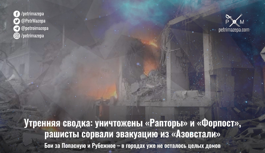 Утренняя сводка: уничтожены «Рапторы» и «Форпост», рашисты сорвали эвакуацию из «Азовстали»