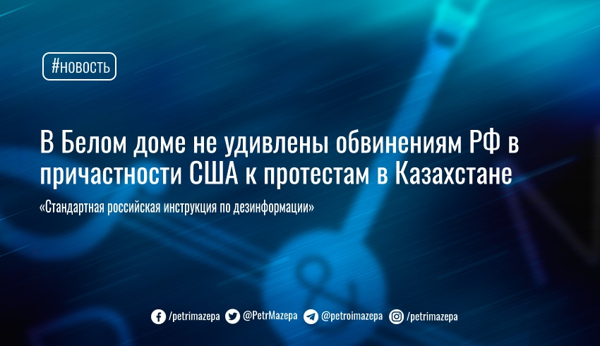 Пресс-секретарь Белого дома Джен Псаки настаивает на том, что Соединенные Штаты Америки не имеют никакого отношения к беспорядкам в Казахстане, называя слухи об этом «безумными заявлениями России».