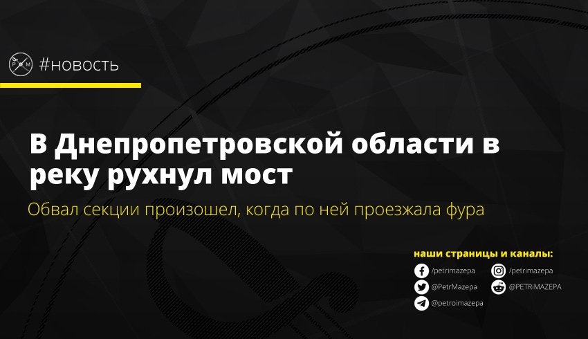 В Днепропетровской области в реку рухнул мост с проезжавшей по нему фурой. По предварительной информации обошлось без жертв и пострадавших.