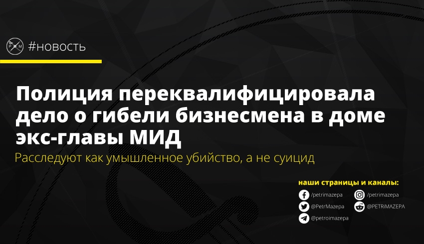 Полиция переквалифицировала дело о гибели бизнесмена Сергея Старицкого в доме экс-министра иностранных дел Леонида Кожары (работал в правительстве Николая Азарова). Теперь правоохранители будут расследовать произошедшее как умышленное убийство, а не суицид, как это предполагалось изначально.