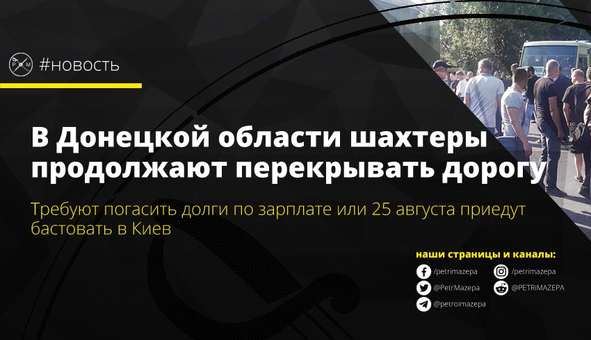 По состоянию на сегодня шахтерам не выплачено 22% зарплаты за май и полностью не выплачены деньги за июнь и июль. «Сегодня протестуют горняки шахты " Курахівська". Они перекрывают дорогу в районе села Новоселидово. К участникам акции присоединились горняки шахты "Україна" которые отказались ехать в шахту голодными», - сообщил глава Независимого профсоюза горняков Украины Михаил Волынец в Facebook.