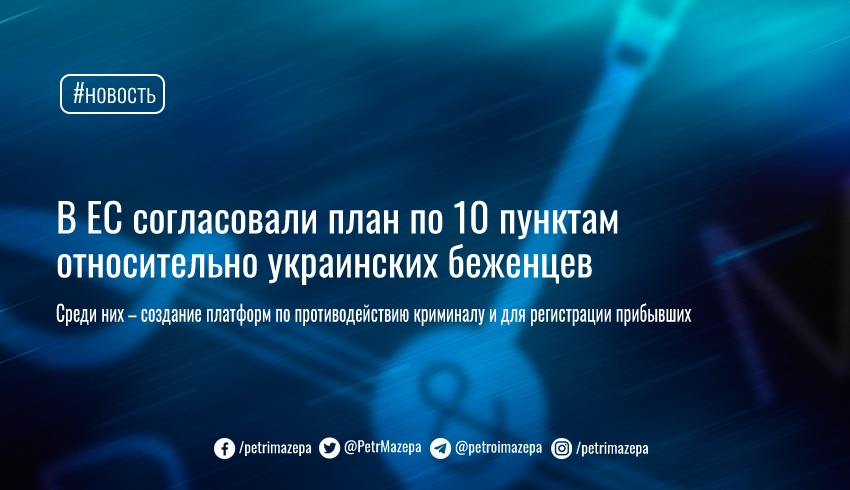 Совет Европейского Союза в понедельник единогласно дал согласие на план из 10 пунктов поддержки украинских беженцев, а также стран Европейского Союза, которые принимают основную часть из них.
